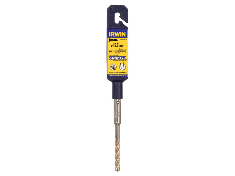 Az IRWIN® Speedhammer Quad Drill Bit ideális lyukak fúrására, dübelek rögzítésére falazatban, minden típusú kőben és betonban. 4 élű geometriája koncentrikusabb lyukat fúr a legjobb rögzítés érdekében.