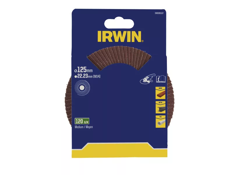 Az Irwin IW8085107 lamellás csiszolókorong minden szokásos 125 mm-es sarokcsiszolóhoz illeszkedik.