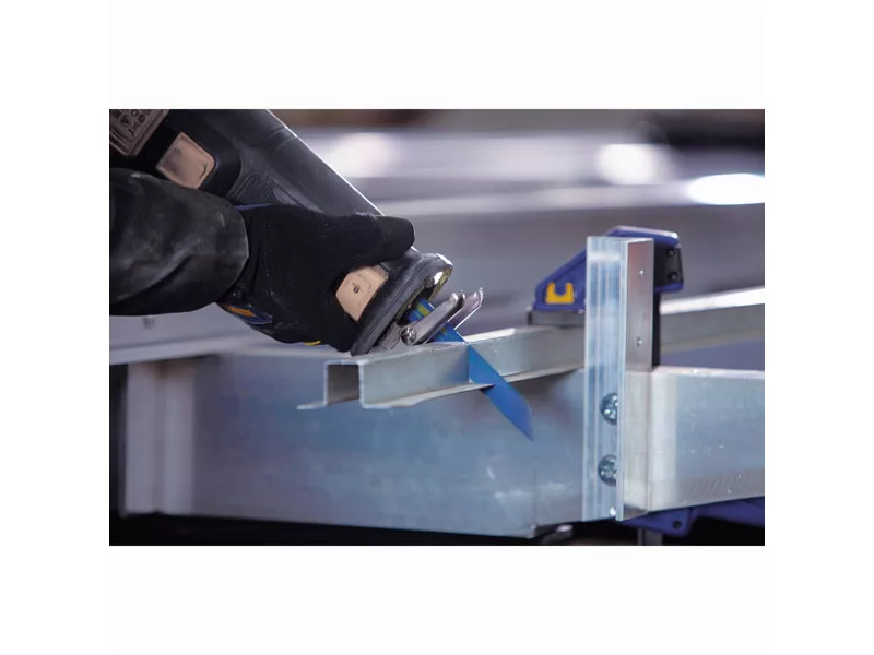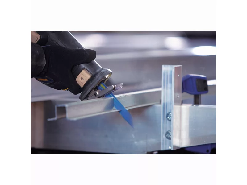 A bimetál szerkezetű ellenállóbb fűrészlap, amely anélkül hajlítható, hogy eltörne, gyorsabb vágást biztosít.