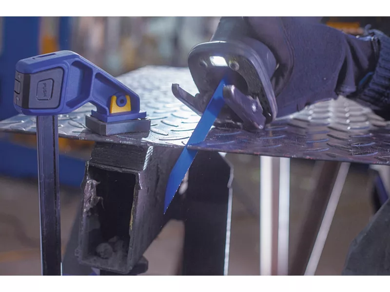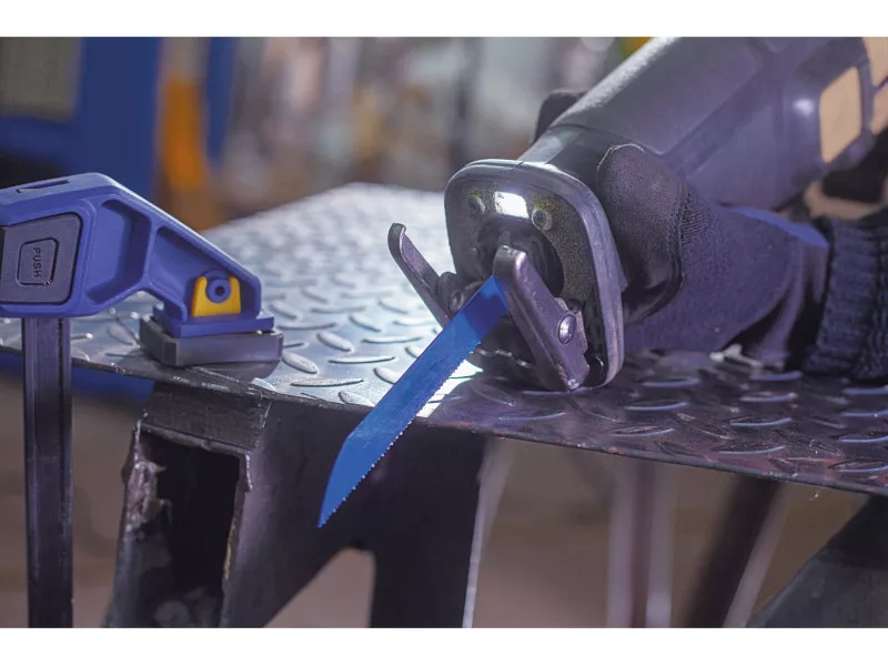 A bimetál szerkezetű ellenállóbb fűrészlap, amely anélkül hajlítható, hogy eltörne, gyorsabb vágást biztosít.