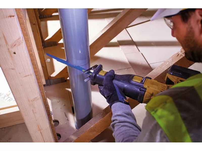 A bimetál szerkezetű ellenállóbb fűrészlap, amely anélkül hajlítható, hogy eltörne, gyorsabb vágást biztosít.