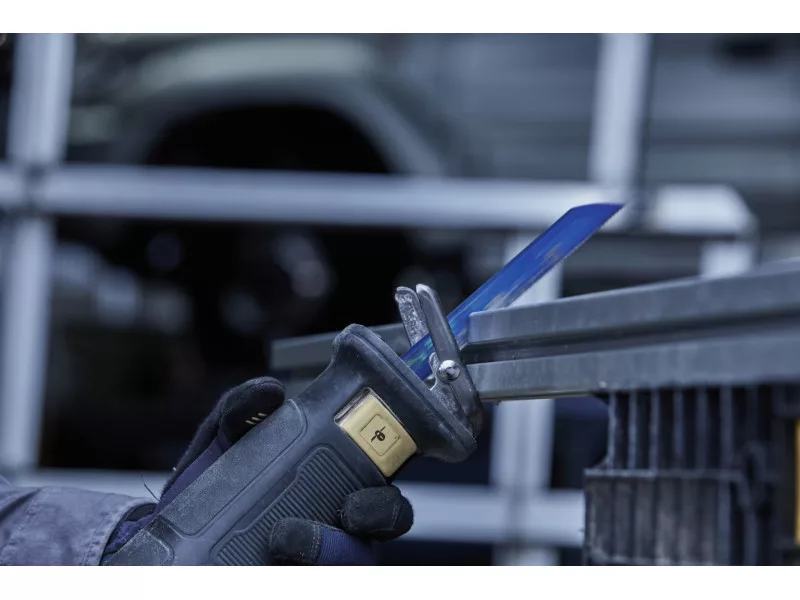 A bimetál szerkezetű ellenállóbb fűrészlap, amely anélkül hajlítható, hogy eltörne, gyorsabb vágást biztosít.