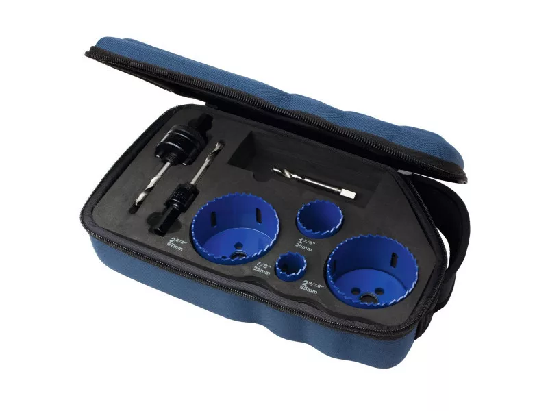 Az Irwin lyukfűrészkészletei most egyedi, tetszetős, puha dobozban kaphatók, amely egy törhetetlen zsanért és bélést tartalmaz a doboz tartalmának megóvása érdekében.