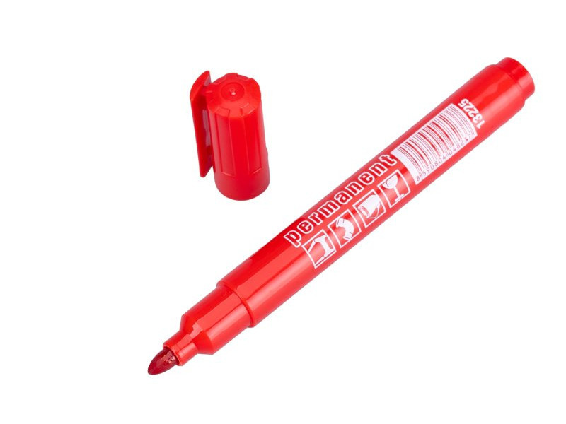 Állandó marker - alkohol, kerek hegy, piros színű.