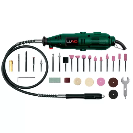Többfunkciós szerszámkészlet, amely többek között a következőket teszi lehetővé: fúrás, csiszolás, polírozás, marás, gravírozás. A multicsiszoló rugalmas csatlakozóval van ellátva, ami különösen hasznos a nehezen hozzáférhető helyeken történő munkavégzéshez.
