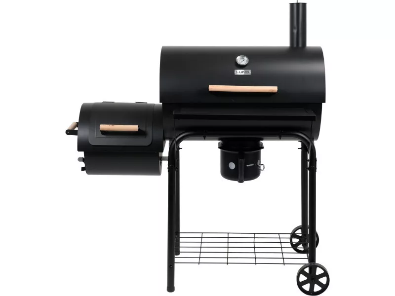 - két kamra - a fő kamra a grillezéshez és egy kisebb kamra a tűzhely előkészítéséhez a füstöléshez