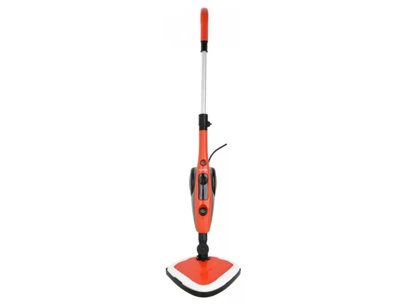 | Állítsa be a tartalmat | gőzfelmosó, rugalmas tömlő 75 cm, rurka 37.5 cm, víztartály (mérőpohár), fej mikroszálas talppal, nagyméretű mikroszálas burkolat, kis mikroszálas huzat, |
