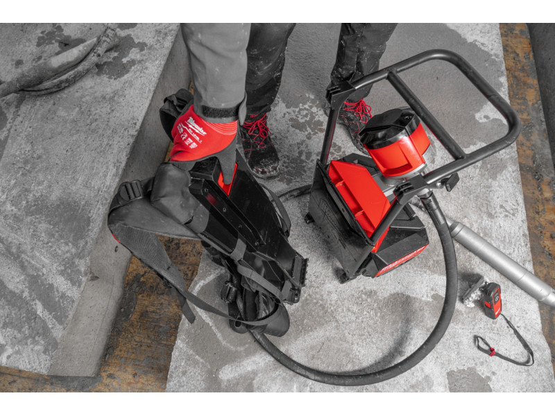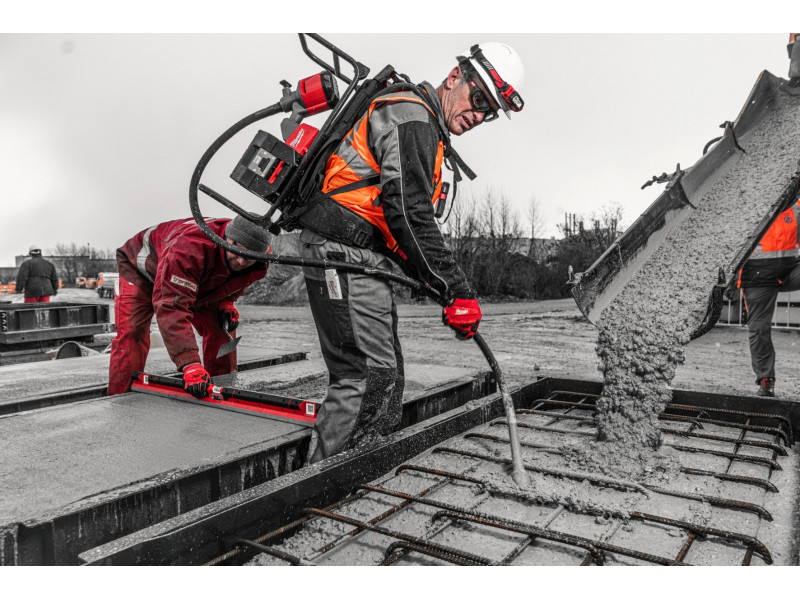 Az MX FUEL™ háti betonvibrátor ideális megoldás nagyobb területeket lefedő munkavégzéshez, mert úgy biztosít váltakozó árammal elérhető teljesítményt, hogy nincs közben gond a kábelekkel, és nincs szükség hálózati aljzatra a munkaterületen