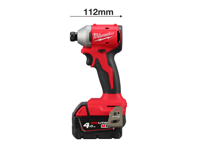 Szénkefe nélküli ütvecsavarozó csupán 112 mm hosszú, kiváló a szűk helyeken végzett feladatokhoz.