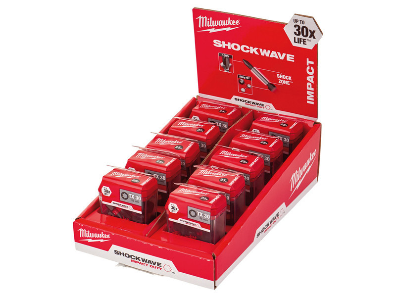 Egyedi tervezésű acél – A Milwaukee® egyedi fém formulájának köszönhetően a Shockwave bitek ellenállóbbak az ütés által kifejtett hatásnak.