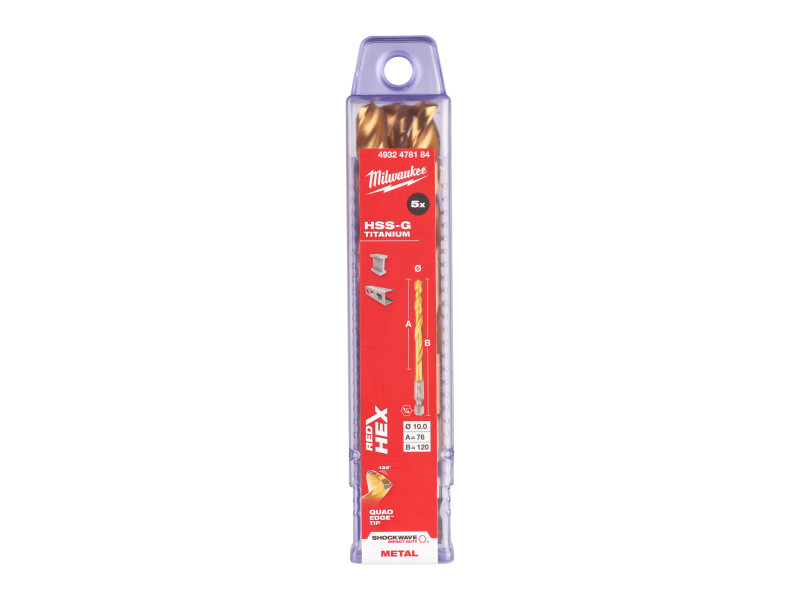 MILWAUKEE Csigafúró 10,0 x 120/76 mm HSS-G TiN, Red HEX - Shockwave™ (5 db)