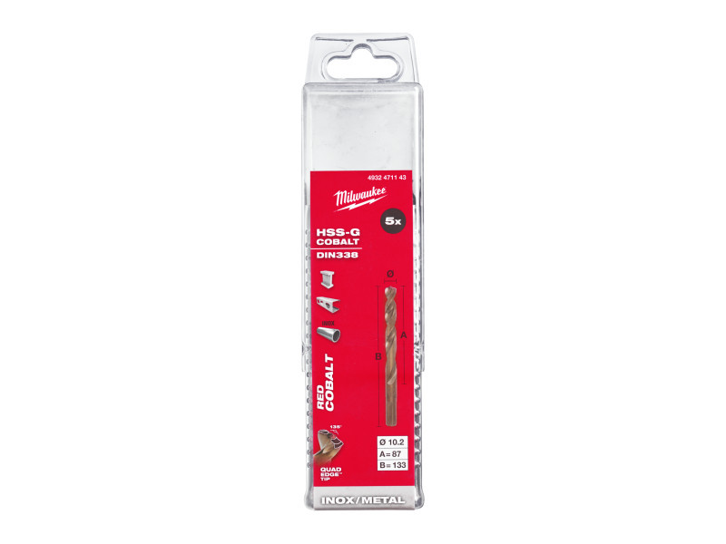MILWAUKEE Csigafúró 10,2 x 133/87 mm HSS-G Co DIN 338 Red Cobalt (5 db)