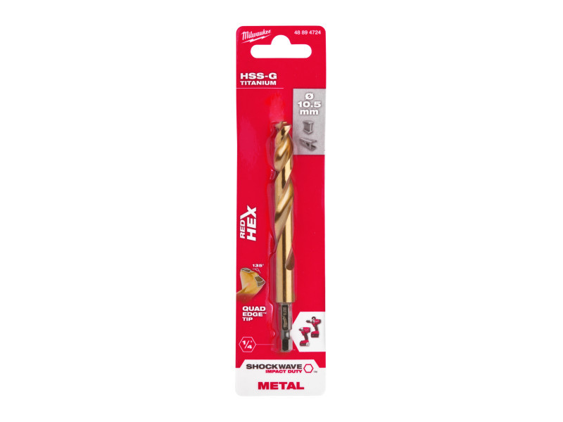 MILWAUKEE Csigafúró 10,5 x 122/78 mm HSS-G TiN, Red HEX - Shockwave™