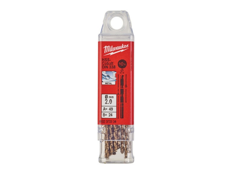 MILWAUKEE Csigafúró 2,0 x 49/24 mm HSS-G Co DIN 338 Red Cobalt (10 db)