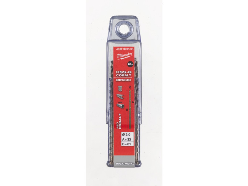 MILWAUKEE Csigafúró 3,0 x 61/33 mm HSS-G Co DIN 338 Red Cobalt (10 db)