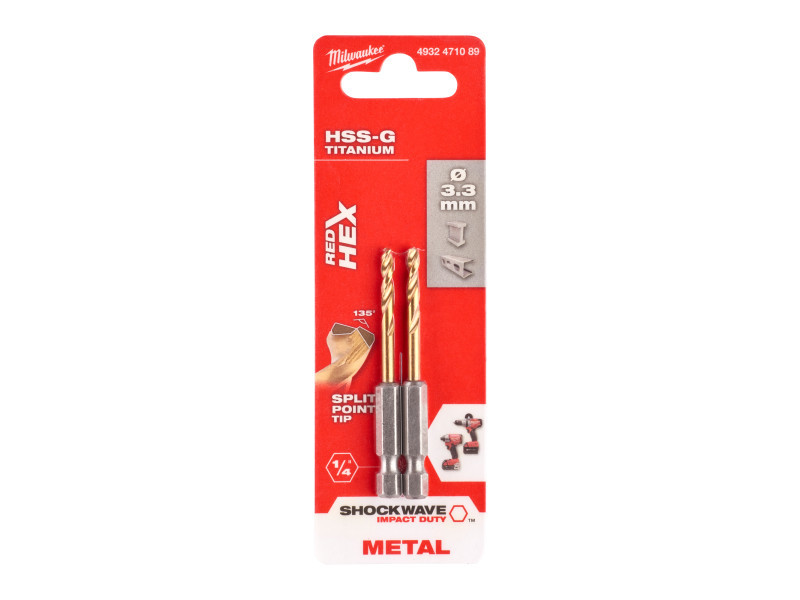 MILWAUKEE Csigafúró 3,3 x 67/24 mm HSS-G TiN, Red HEX - Shockwave™ (2 db)