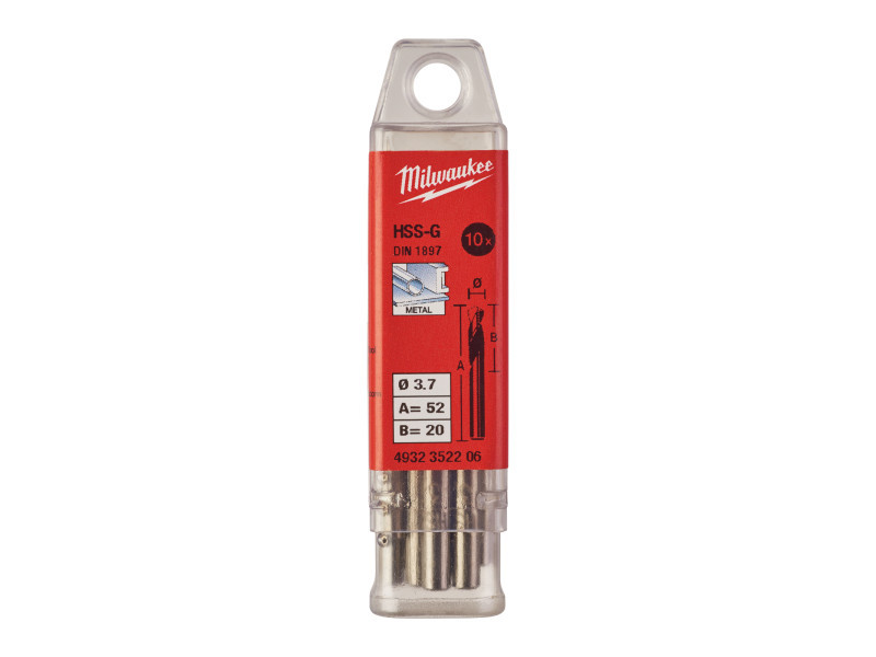 MILWAUKEE Csigafúró 3,7 x 52/20 mm HSS-G DIN 1897 (10 db)