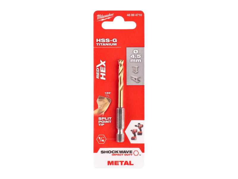 MILWAUKEE Csigafúró 4,5 x 76/29 mm HSS-G TiN, Red HEX - Shockwave™