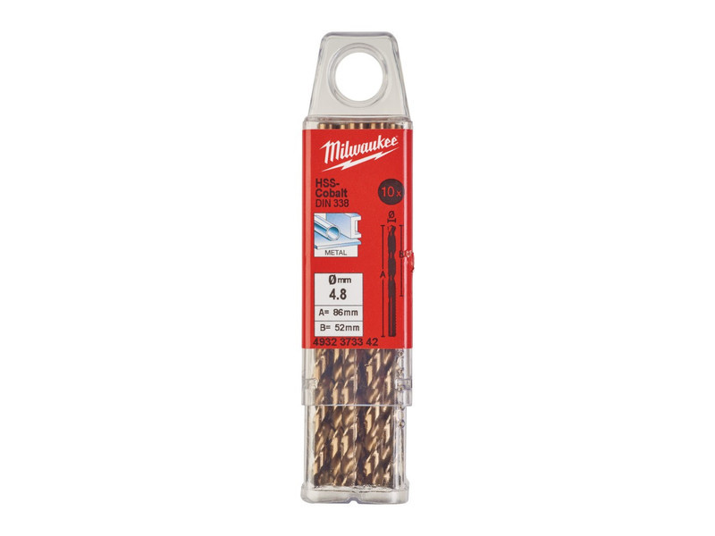 MILWAUKEE Csigafúró 4,8 x 86/52 mm HSS-G Co DIN 338 Red Cobalt (10 db)