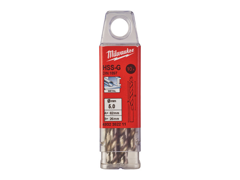 MILWAUKEE Csigafúró 5,0 x 62/26 mm HSS-G DIN 1897 (10 db)