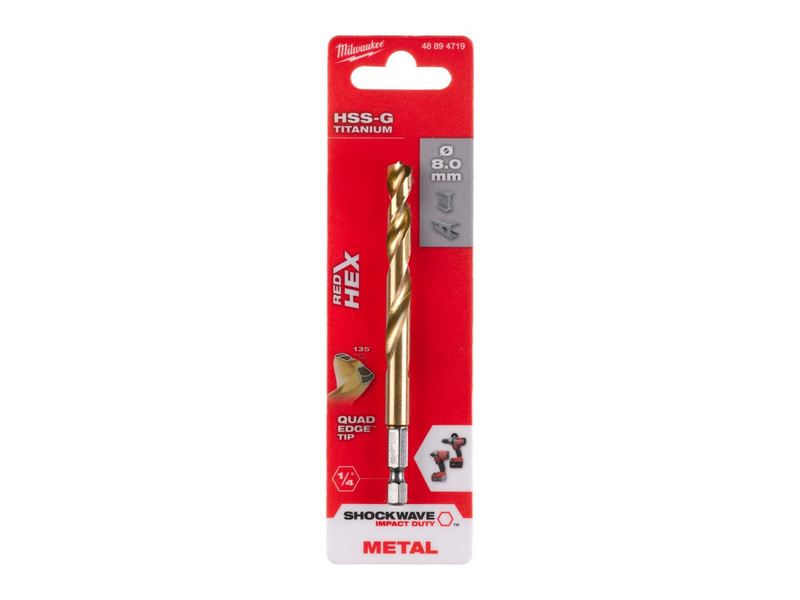 MILWAUKEE Csigafúró 8,0 x 111/70 mm HSS-G TiN, Red HEX - Shockwave™