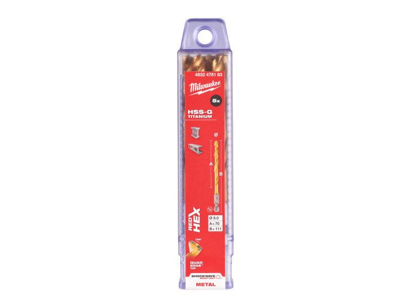 MILWAUKEE Csigafúró 8,0 x 111/70 mm HSS-G TiN, Red HEX - Shockwave™ (5 db)
