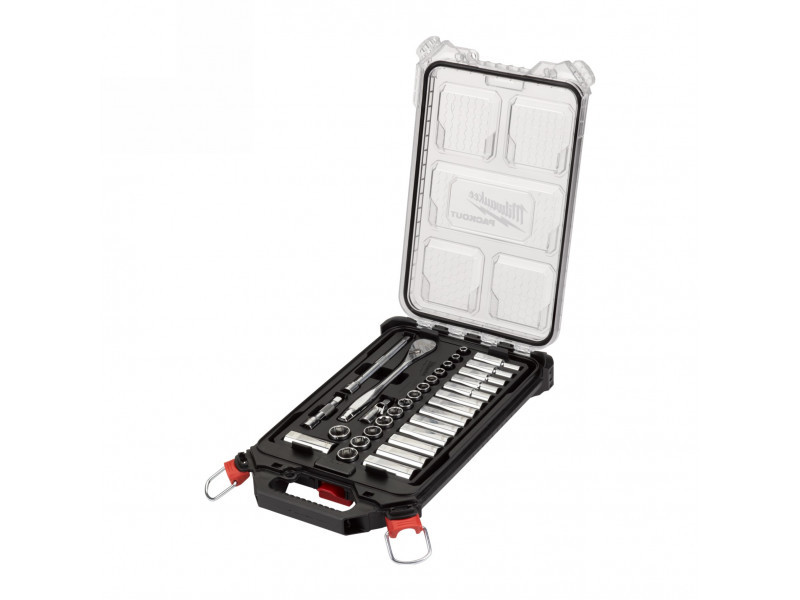 MILWAUKEE Dugókulcs készlet 32 részes 3/8" 6-19 mm PACKOUT keskeny rendszerezőben