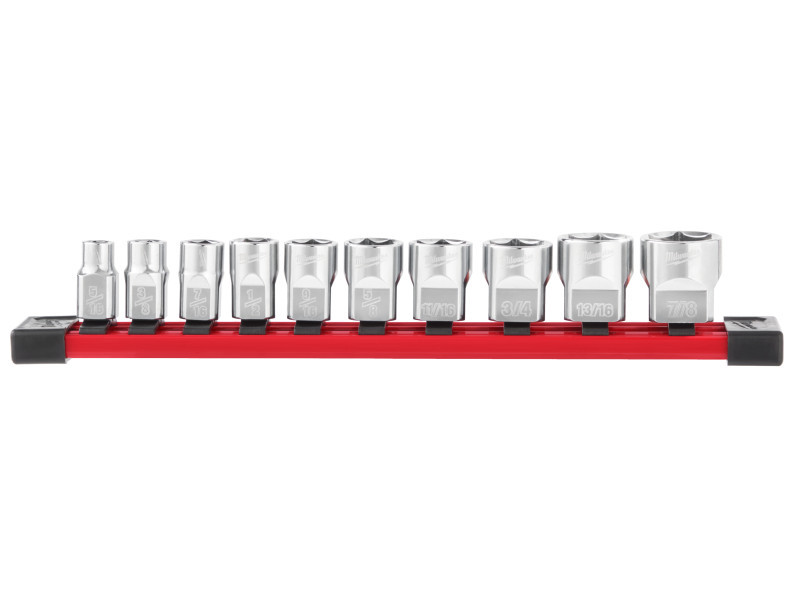 MILWAUKEE Dugókulcs készlet tároló sínnel colos 10 részes 3/8" (5/16" - 7/8")