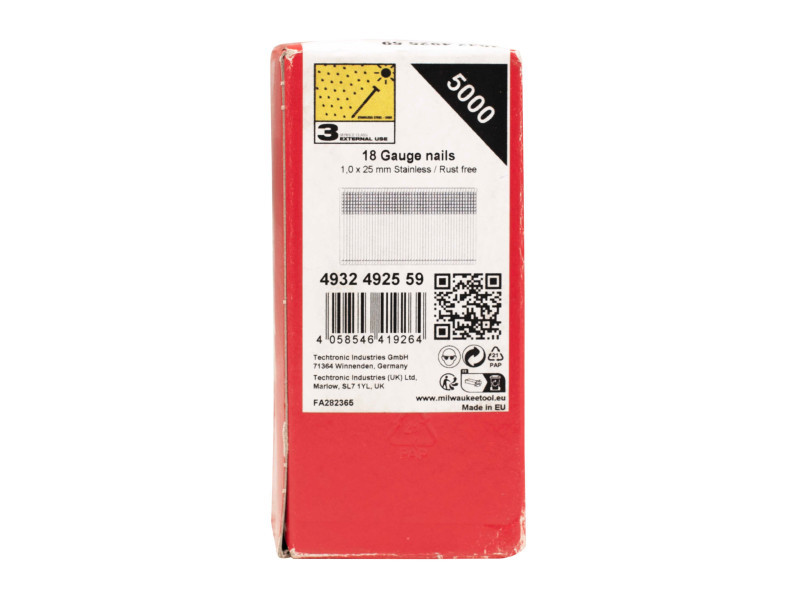 MILWAUKEE Finiselő szegek, fejnélküli, inox, 18G 0° SC3 - 1,05 x 1,25 x 25 mm (5000 db)
