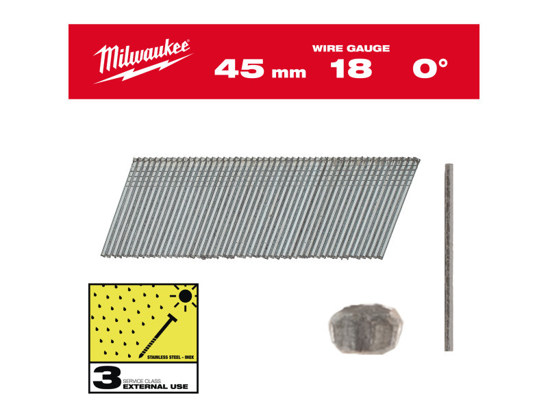 MILWAUKEE Finiselő szegek, fejnélküli, inox, 18G 0° SC3 - 1,05 x 1,25 x 45 mm (5000 db)