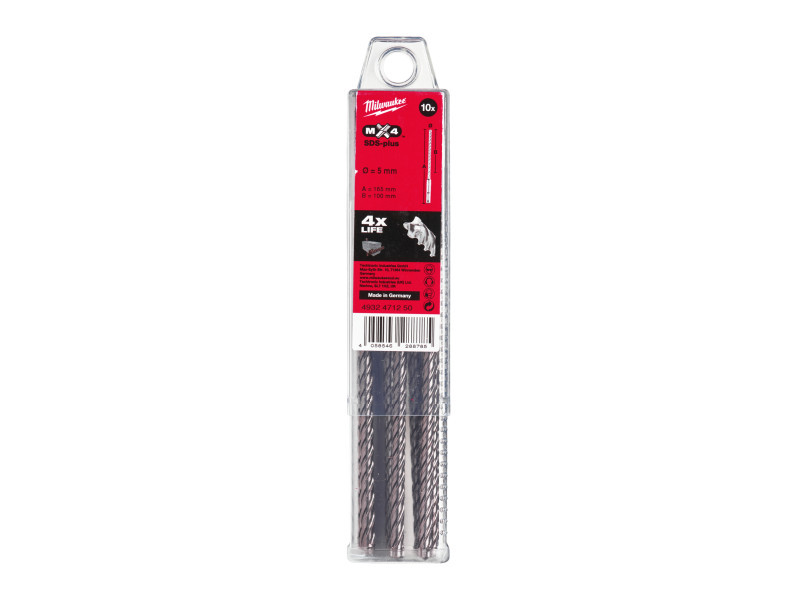 MILWAUKEE Kőzetfúró 5,0 x 165/100 mm négyélű SDS-Plus (10 db)
