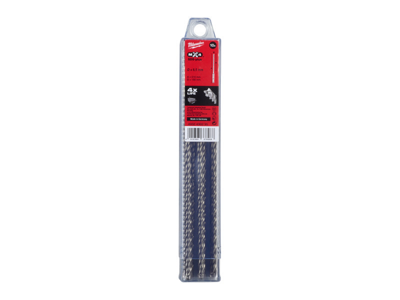 MILWAUKEE Kőzetfúró 6,5 x 215/150 mm négyélű SDS-Plus (10 db)