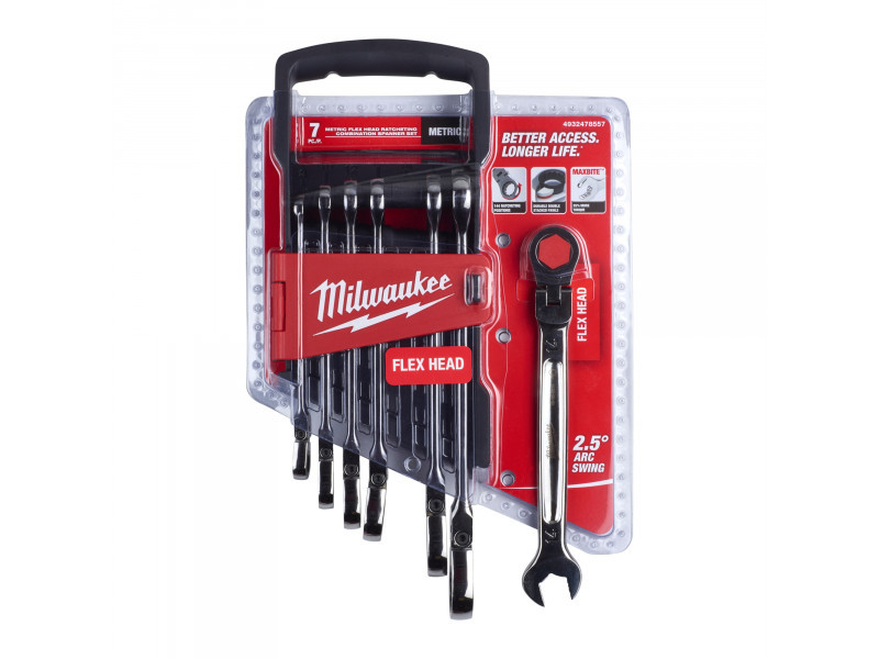MILWAUKEE Racsnis csuklós csillag-villáskulcs készlet 7 részes 8-17 mm CrV MAX BITE™