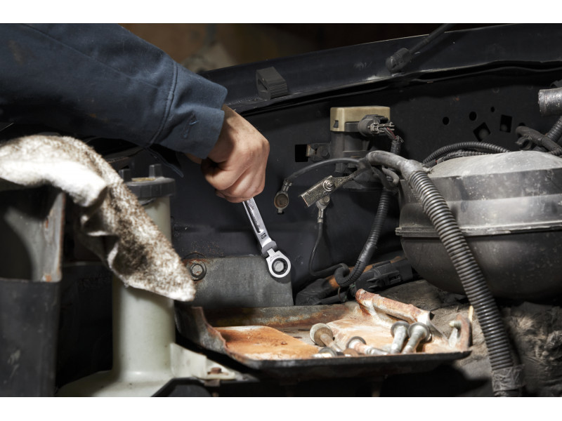 • A 180° -ban forgatható racsnis fej lehető teszi a munkavégzést nehezen elérhető helyeken