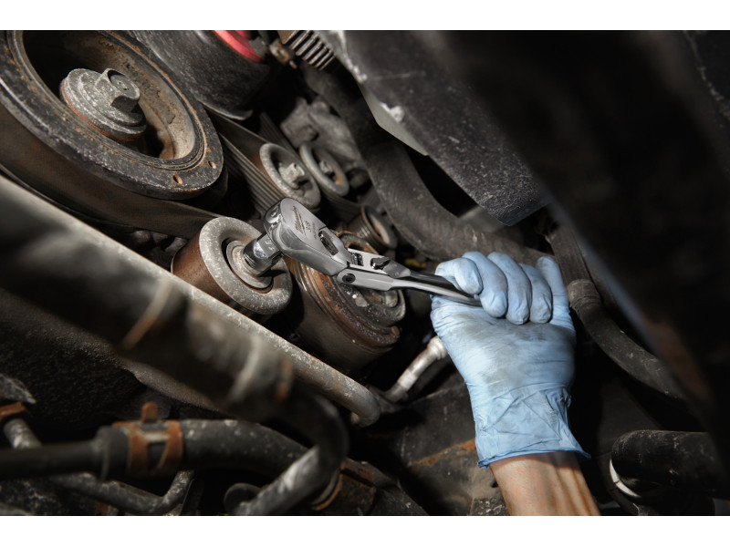MILWAUKEE Racsnis hajtószár 3/8" 216 mm 90T csuklós ±90° egyenes szár