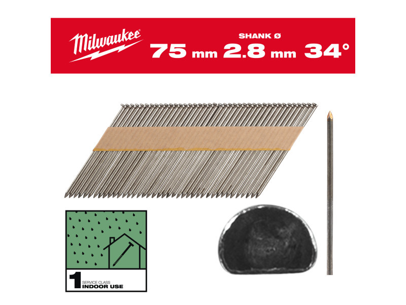 MILWAUKEE Szerkezetépítő szegek, D-fejű, fényes, 34° SC1 - 2,8 x 75 mm (2200 db)