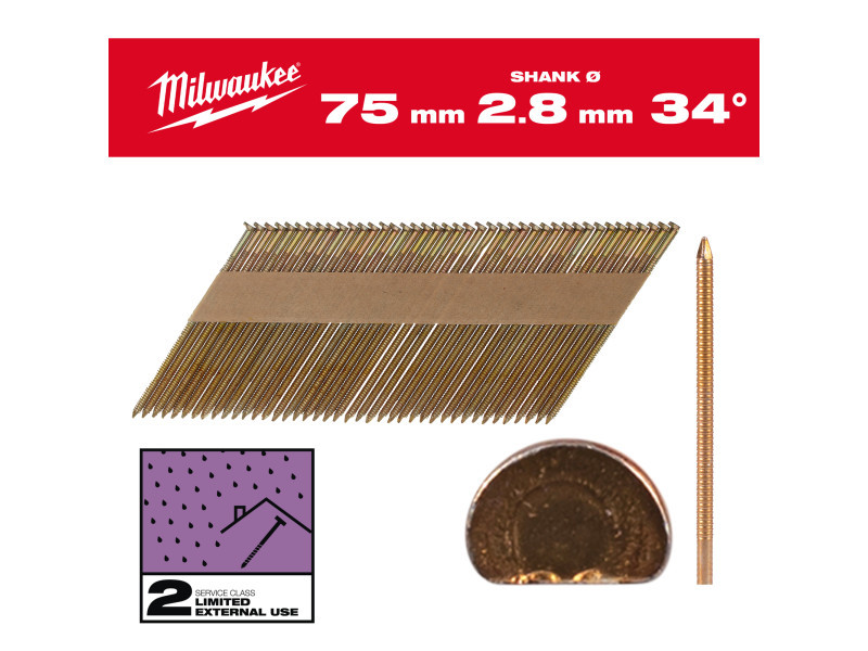 MILWAUKEE Szerkezetépítő szegek, D-fejű, galvanizált 34° SC2 - 2,8 x 75 mm (2200 db)