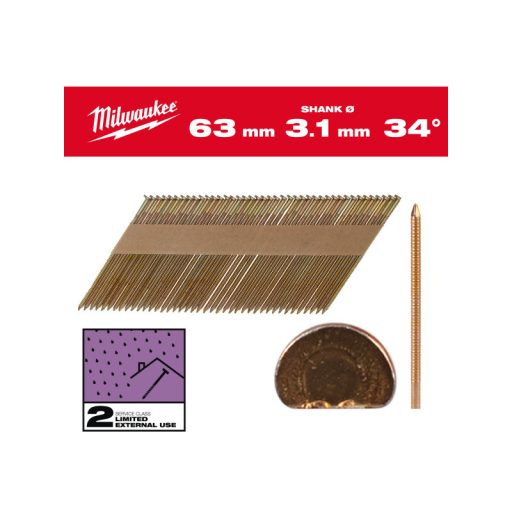 MILWAUKEE Szerkezetépítő szegek, D-fejű, galvanizált 34° SC2 - 3,1 x 63 mm (2200 db)