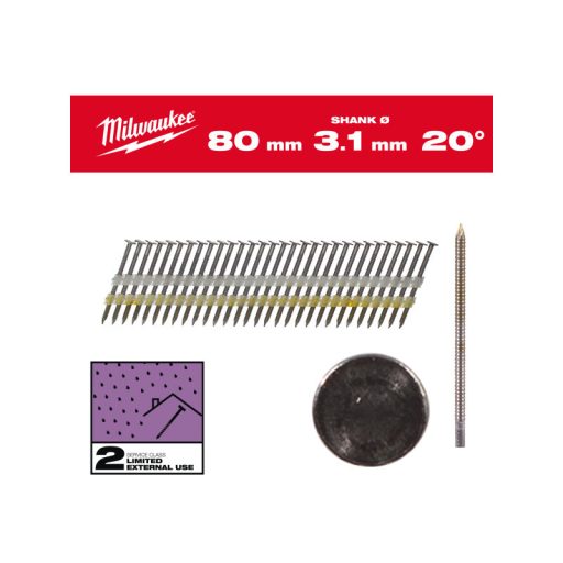 MILWAUKEE Szerkezetépítő szegek, kerekfejű, galvanizált 20° SC2 - 3,1 x 80 mm (1750 db)