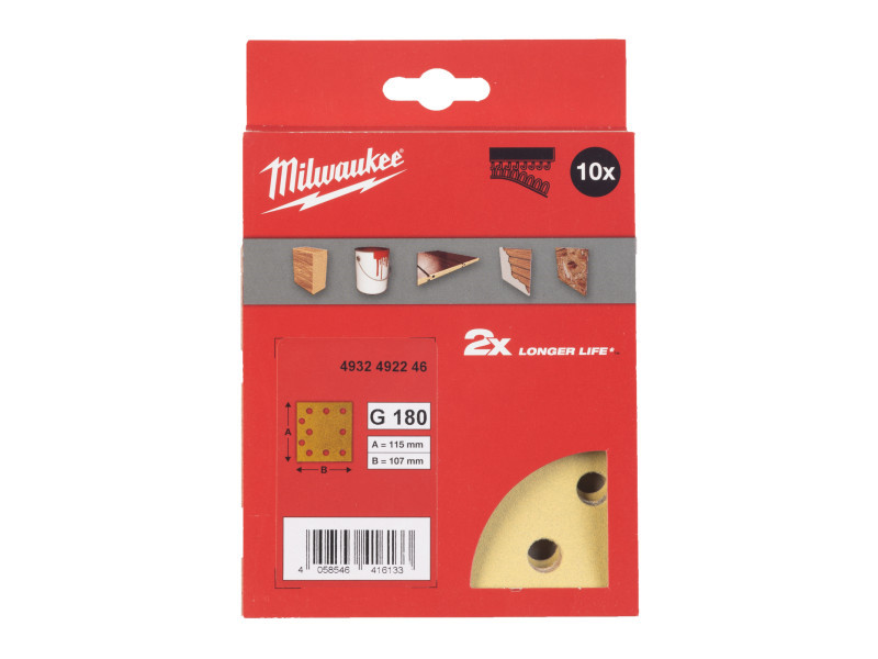MILWAUKEE Tépőzáras csiszolólap HP 115 x 107 mm / P180 10 lyukas (10 db)