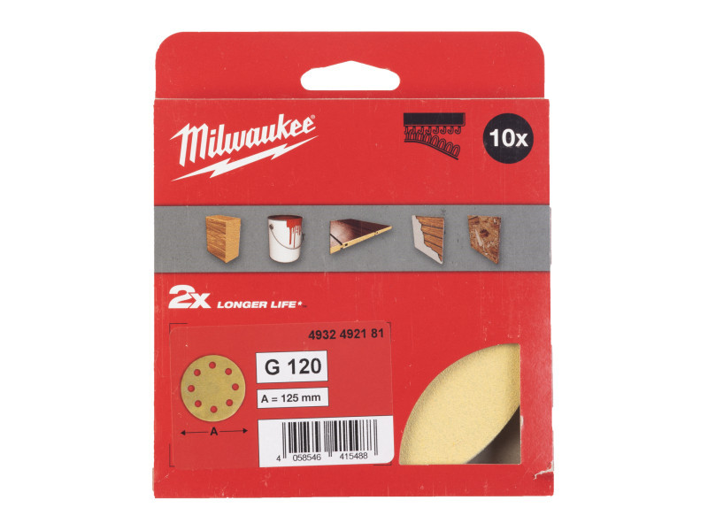 MILWAUKEE Tépőzáras csiszolólap HP 125 mm / P120 8 lyukas (10 db)