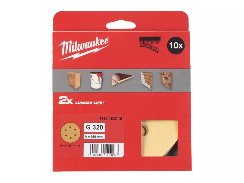 MILWAUKEE Tépőzáras csiszolólap HP 150 mm / P320 8 lyukas (10 db)