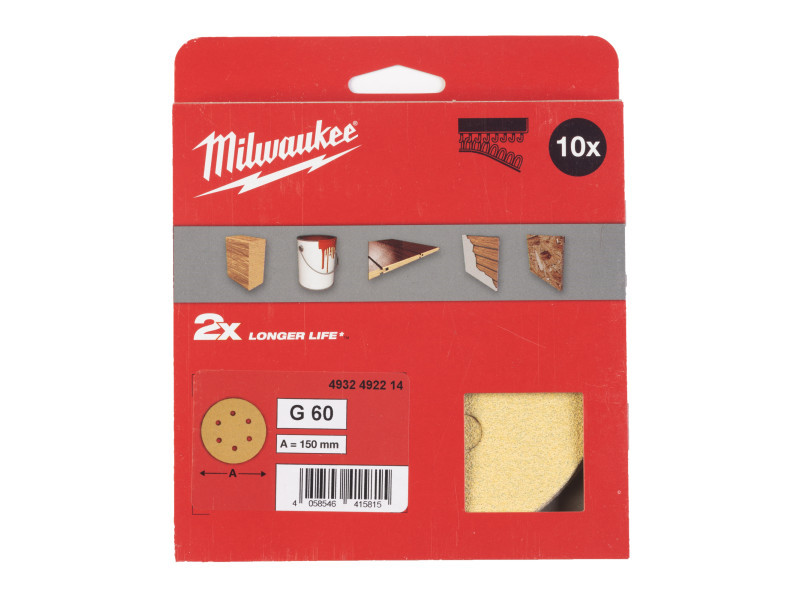 MILWAUKEE Tépőzáras csiszolólap HP 150 mm / P60 8 lyukas (10 db)