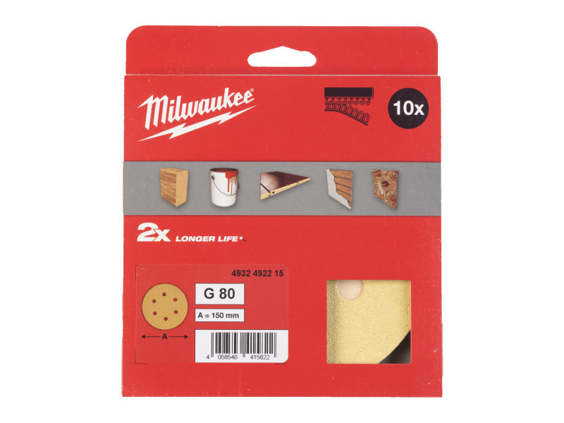 MILWAUKEE Tépőzáras csiszolólap HP 150 mm / P80 8 lyukas (10 db)