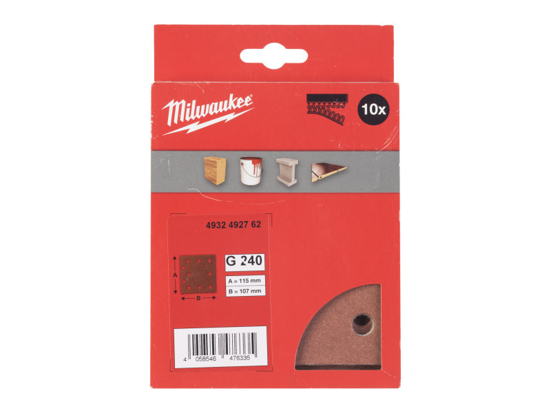 MILWAUKEE Tépőzáras csiszolólap STD 115 x 107 mm / P240 10 lyukas (10 db)