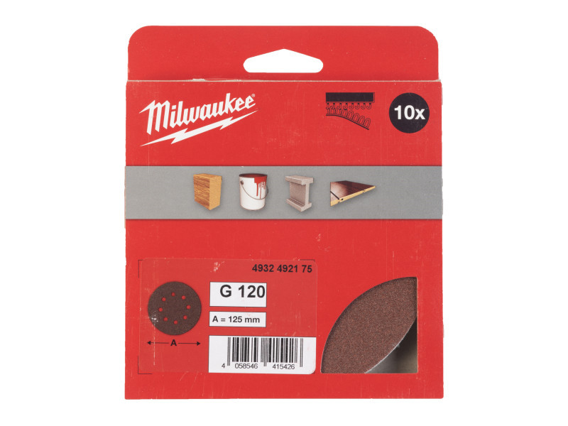 MILWAUKEE Tépőzáras csiszolólap STD 125 mm / P120 8 lyukas (10 db)