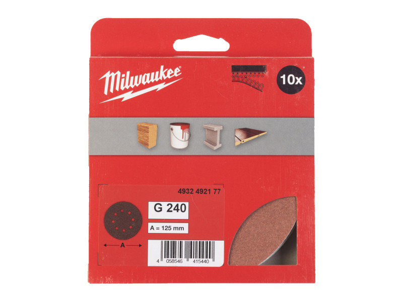 MILWAUKEE Tépőzáras csiszolólap STD 125 mm / P240 8 lyukas (10 db)