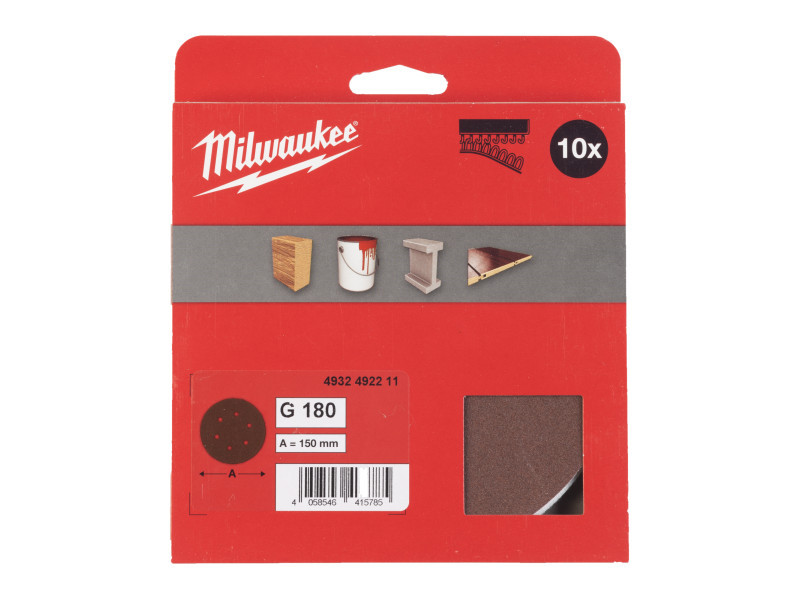 MILWAUKEE Tépőzáras csiszolólap STD 150 mm / P180 6 lyukas (10 db)