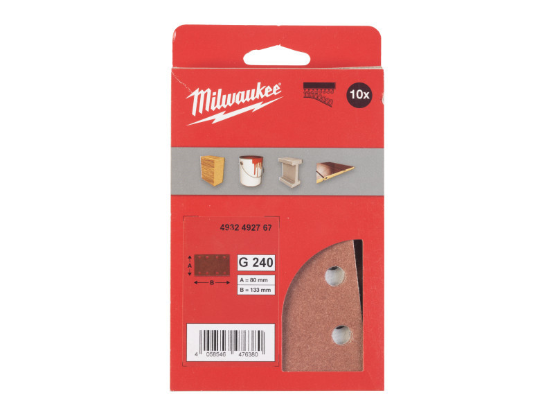 MILWAUKEE Tépőzáras csiszolólap STD 80 x 133 mm / P240 10 lyukas (10 db)