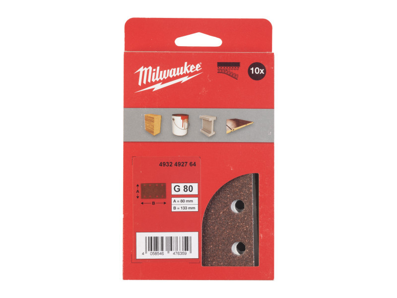 MILWAUKEE Tépőzáras csiszolólap STD 80 x 133 mm / P80 10 lyukas (10 db)
